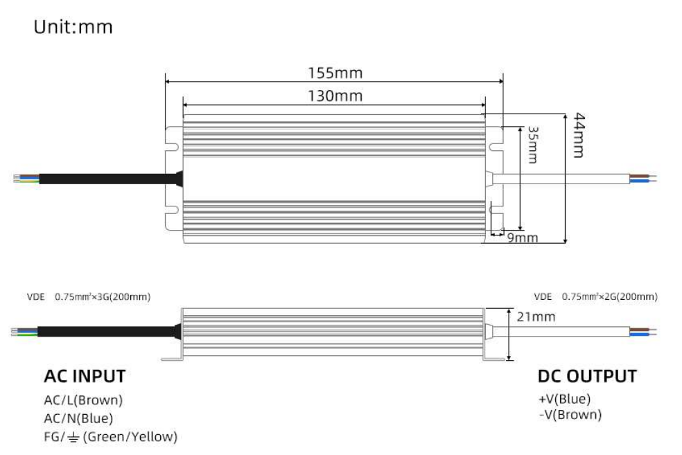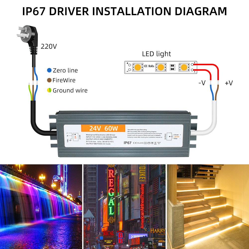 | 60W | 130*44*21 | 90V-130V/170-250V | IP67 | 24V60W | 24V | 2.5A | 40 |