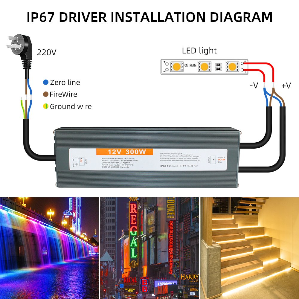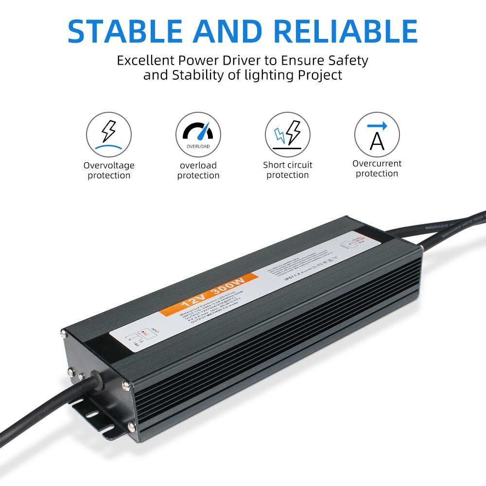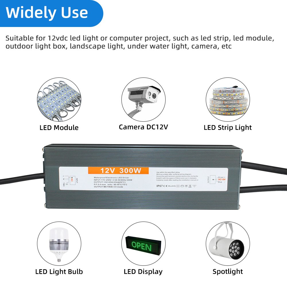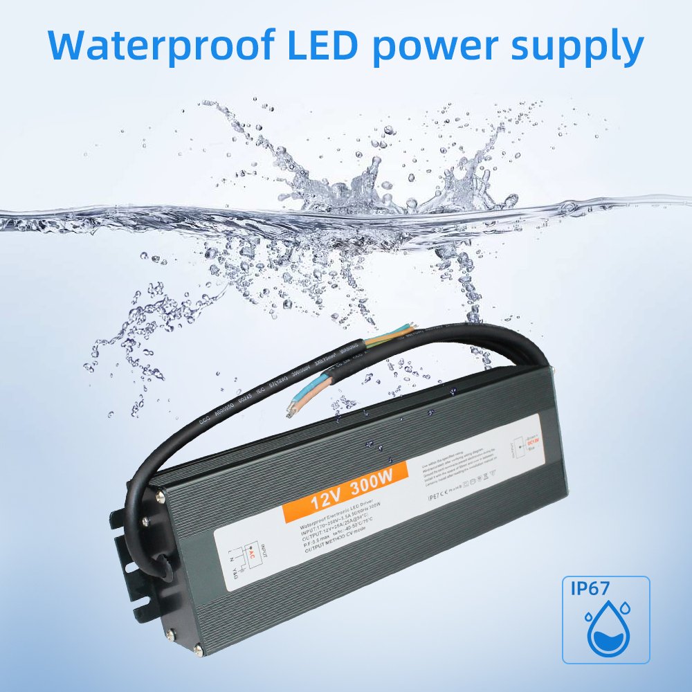LED Driver IP67 Waterproof 300W LED Power Supply 230V AC to 24V DC for LED Tape Lighting